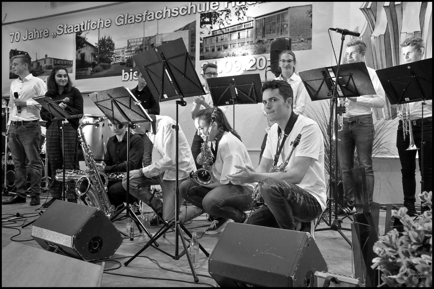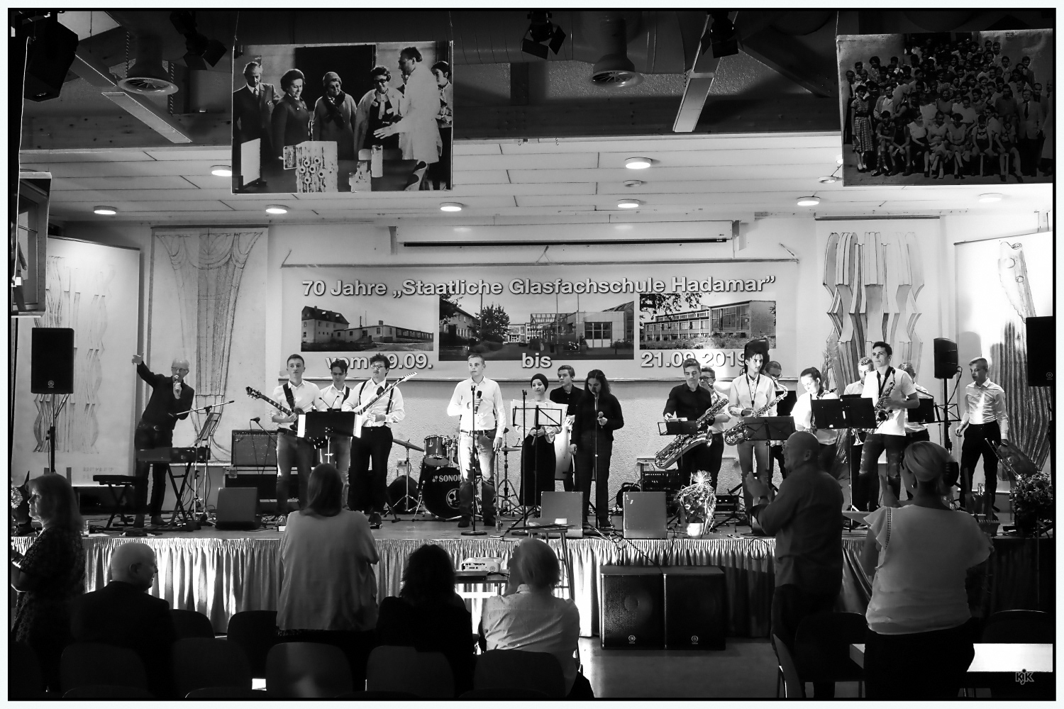 Die Schulband "Teacher's Dispair" des FJL-Gymnasiums Hadamar spielte zum 70sten Geburtstag der Glasfachschule Hadamar in deren Festhalle.